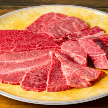 シャトーブリアン、ザブトン、リブ芯、ランプ、イチボ、ミスジなど、その日のオススメ6種が楽しめる盛り合わせ。部位ごとに異なるカット法で肉のおいしさを最大限に引き出しています。
